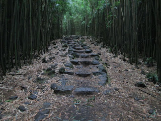 Je passe par un parc, le kepaniwai heritage garden, une sorte de mémorial japonais ou coréen, je ne sais pas trop. Puis je continue à remonter la vallée qui est sous les nuages (souvent le cas car les nuages s'y engouffrent et restent coincer dedans).